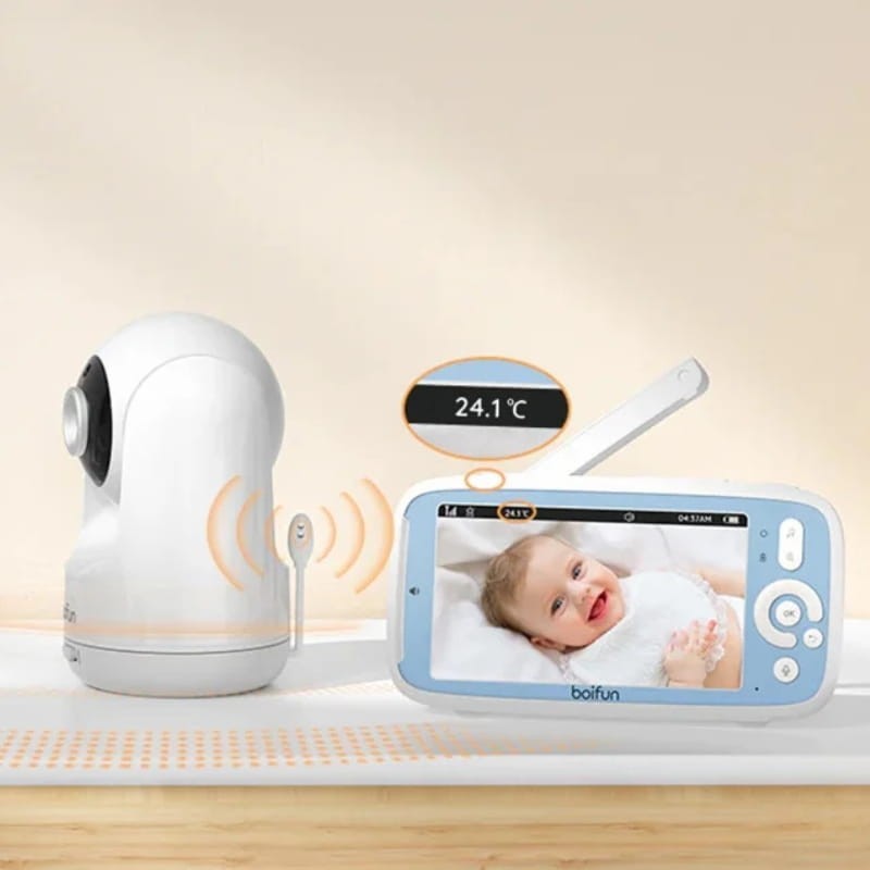 El Boifun VB805 ofrece cámara 720p, pantalla IPS 5", giro 330°, visión nocturna, audio bidireccional, VOX, sensor de temperatura y batería de larga duración. Control total y tranquilidad hasta 500 m.