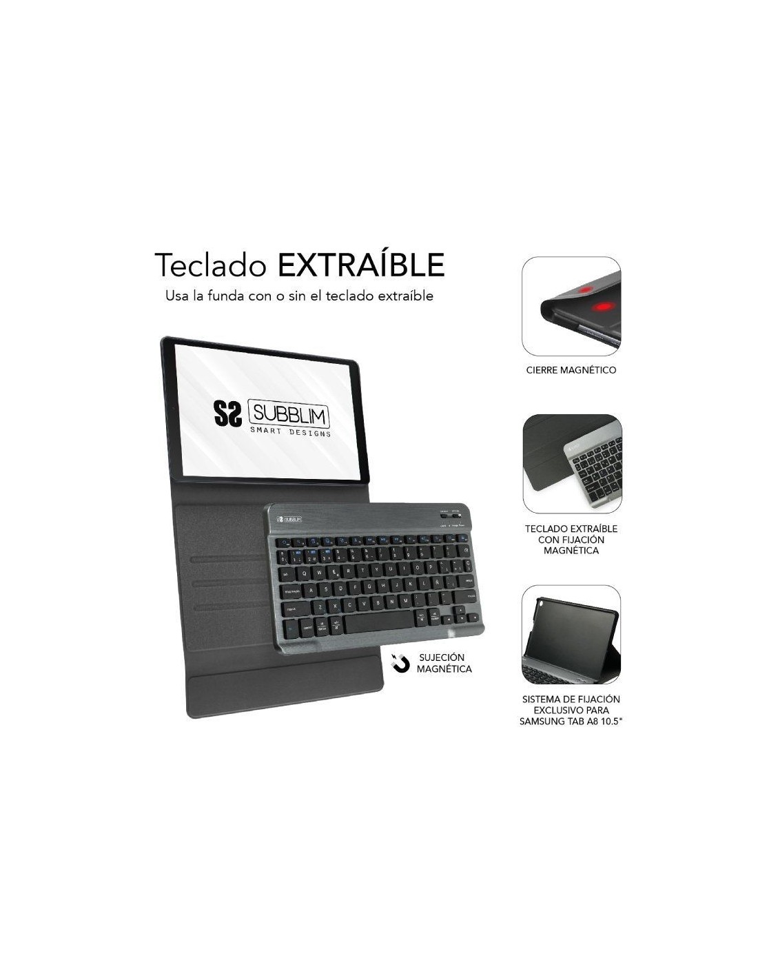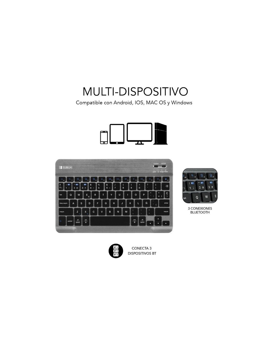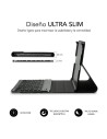 El teclado Bluetooth es extraíble y se adhiere a la funda mediante un sistema de potentes imanes. El sistema de cierre es también mediante una solapa magnética.