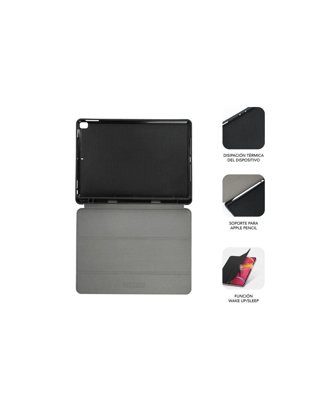 Tiene un diseño moderno y elegante en formato Full SmartCover. La carcasa posterior está hecha de material de termoplástico que disipa el calor del iPad además de ofrecer una especial protección para que no tenga que preocuparse por ningún daño y añade unos bordes reforzados contra las caídas. Ofrece una fácil instalación con un sencillo clip. Dispone de diferentes ángulos de visión con los que podrás visionar vídeos o escribir. Todas las funcionas de la Tablet son accesibles con la funda puesta y posee una abertura para cámara que permite tomar fotos y videos. Esta funda de una pieza se ajustará a tu nuevo iPad 10,2” como un guante y con un cierre magnético de precisión. Ofrece una forma ideal de protección donde quiera que vaya.