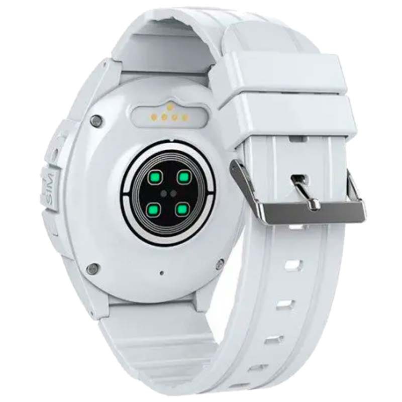 Pantalla IPS - Diseño redondo de 1.28 - Resolución de 240 x 240 píxeles - Conexión 4G, 3G y 2G - Contador de pasos - Monitor del ritmo cardíaco - Monitor SpO2 - Monitor presión sanguínea - Llamadas y mensajes - Localización GPS - Cámara frontal de 0.3 MP - Batería de 680 mAh - Resistente al agua IP67 - Azul