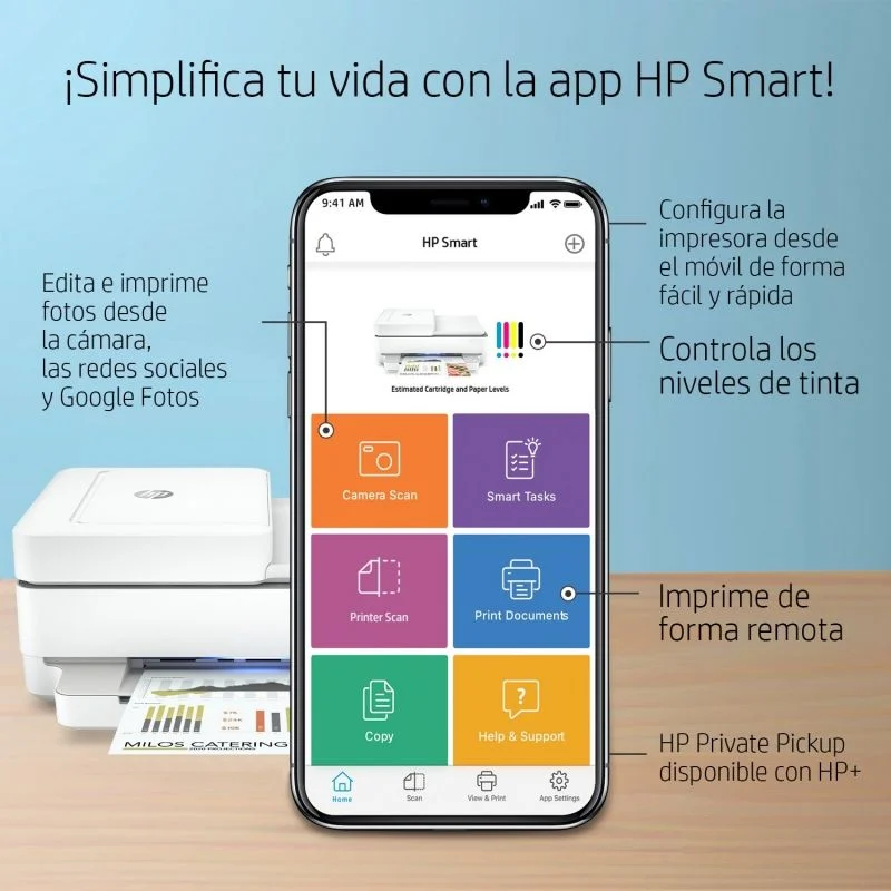 Imprime, escanea y copia documentos diarios desde tu móvil con la aplicación HP Smart.