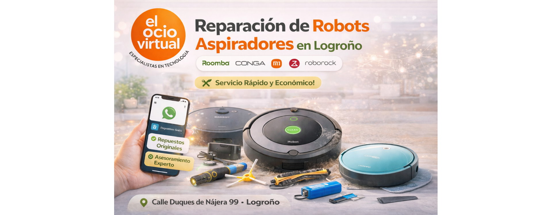- Reparamos todas las marcas: Roomba, Conga, Xiaomi, Ecovacs, Neato, Cecotec y más.
