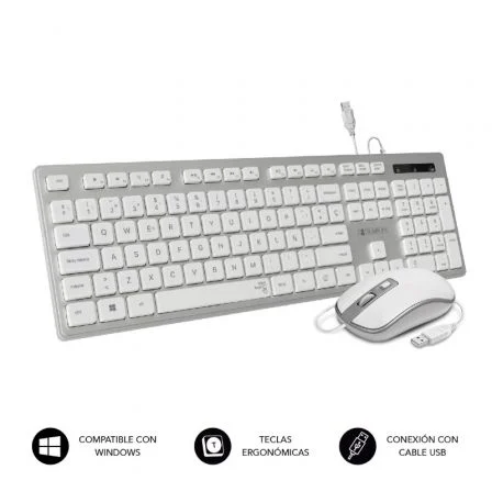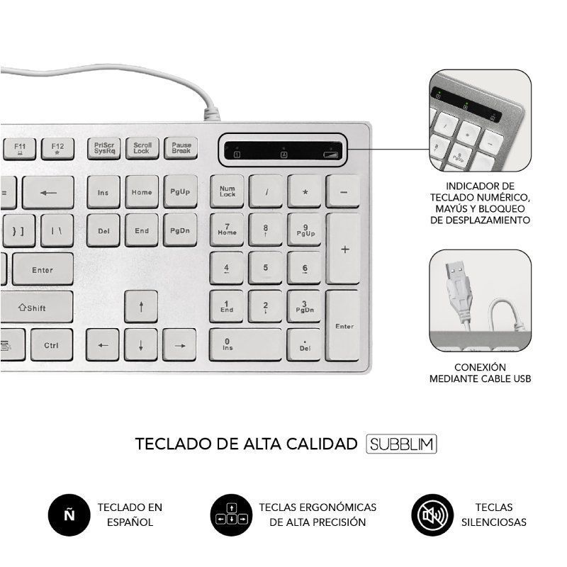 Teclado y Ratón Subblim Combo Wired Ergo Keys Silent Flat HQ/ Plata y Blanco
