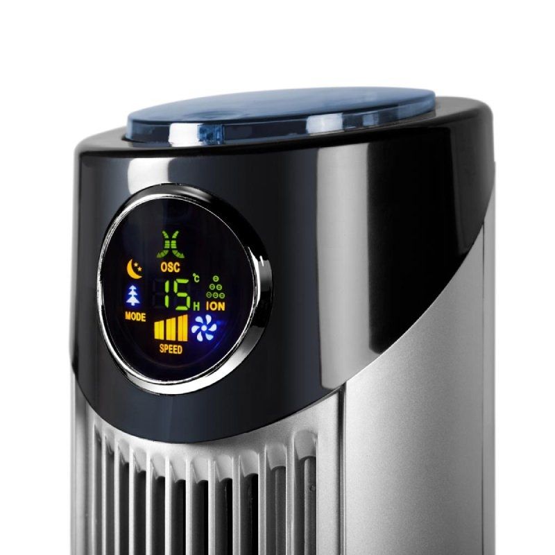 El ventilador de torre iónico oscilante de Orbegozo incorpora un FND Display Digital, así como también un ángulo de rotación de hasta 80°, con lo cual se facilita el continuo flujo de aire. Por otra parte, el mando a distancia garantiza mayor comodidad y confort para el cliente y el resto de su familia. Sin duda alguna, es una de las mejores opciones del mercado y un excelente aliado contra el calor.