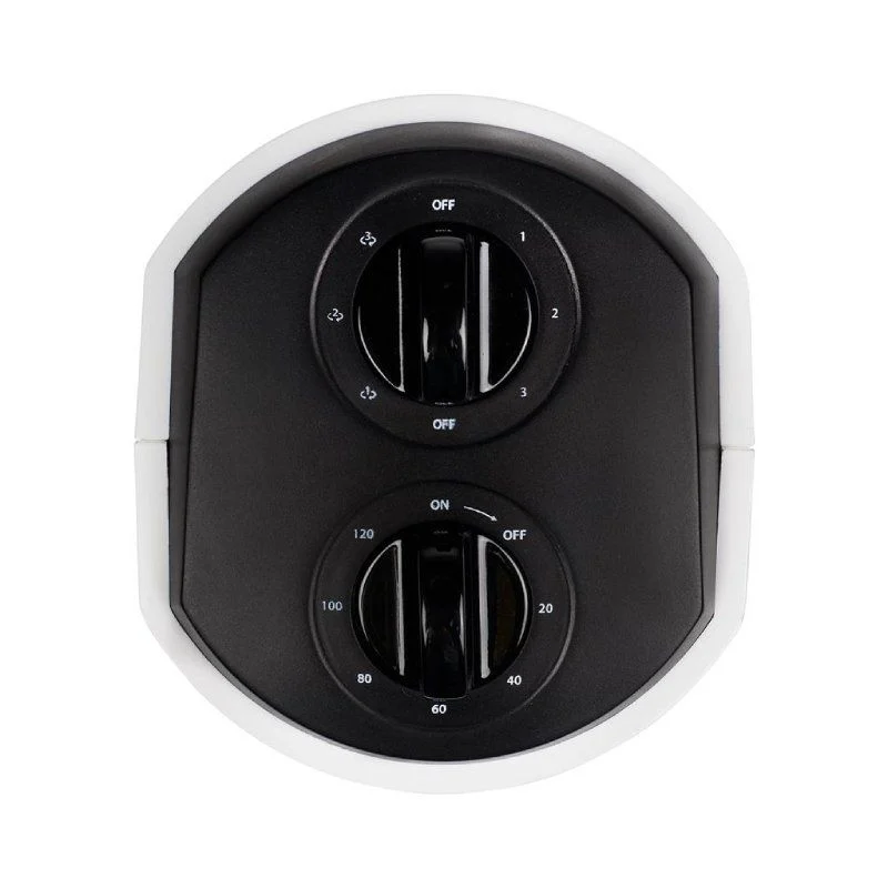 El ventilador de torre Tristar puede girar 80 grados sobre su base, por lo que podrá disfrutar de una brisa fresca en cualquier punto de la habitación. Con su práctico botón giratorio en la parte superior, puede seleccionar fácilmente una de las tres velocidades de flujo de aire. Así podrá disfrutar de la cantidad adecuada de aire fresco para cada habitación en cualquier momento.